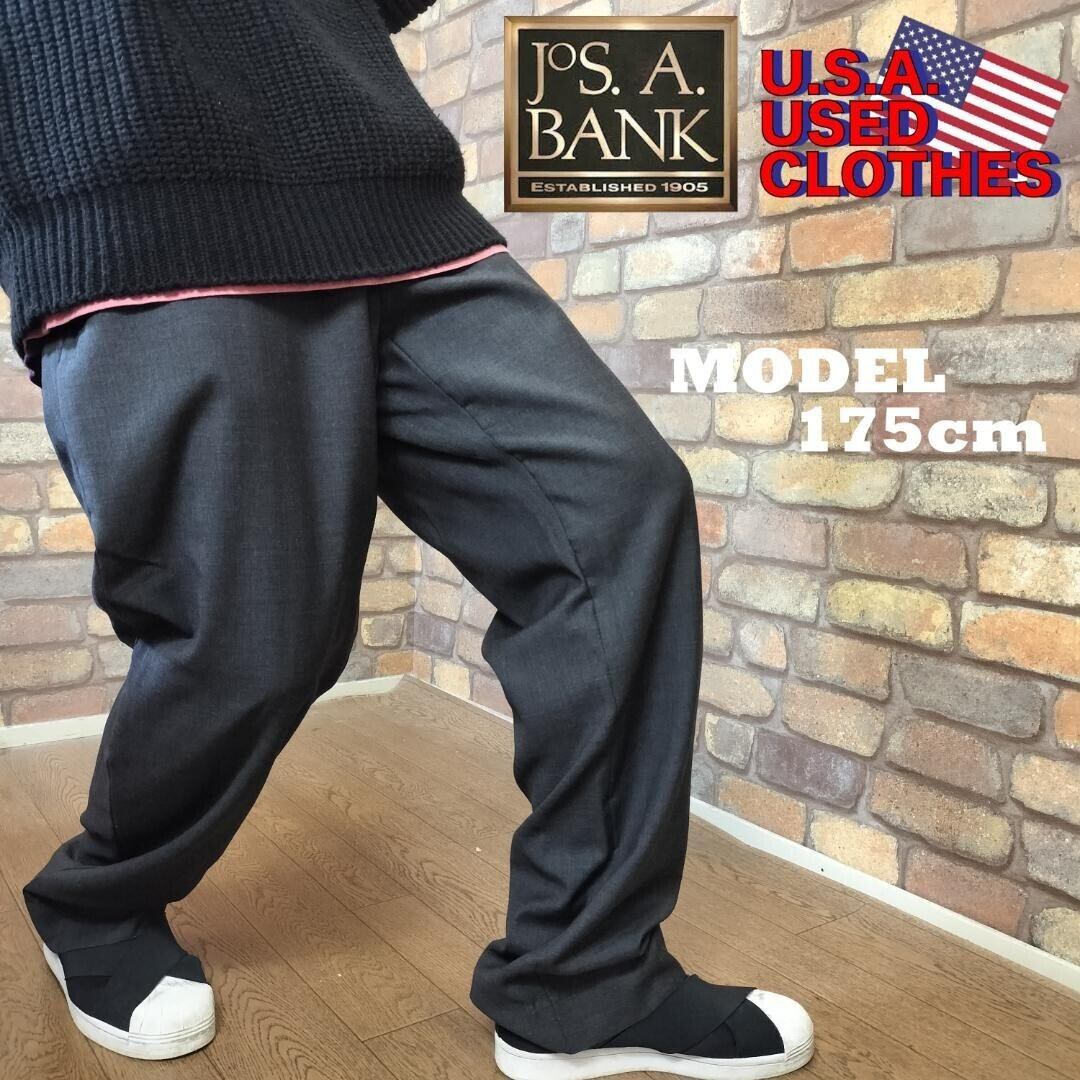 【 JOS.A.BANK 】ワイドシルエット ウールパンツ チャコールグレー
