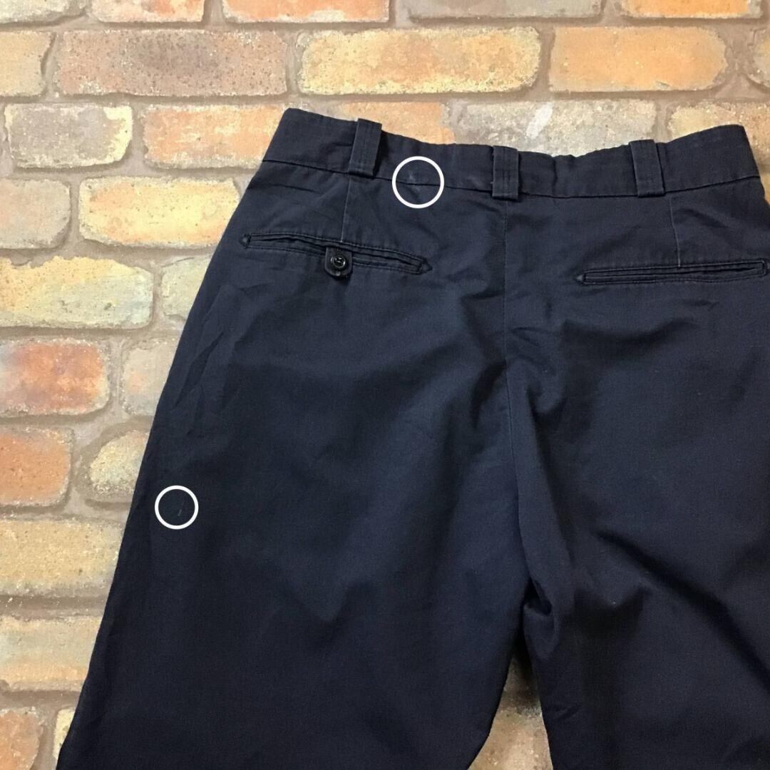 ウエストに少し擦れ傷、後左モモにひっかけ跡があります。