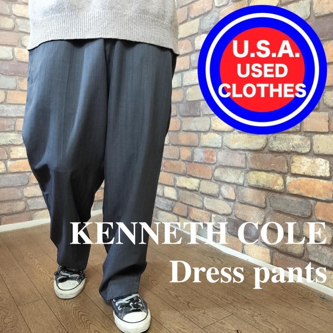 【KENNETH COLE】日本未発売 ストライプ ワイドパンツ★濃灰★ダボパン★BP2-429
