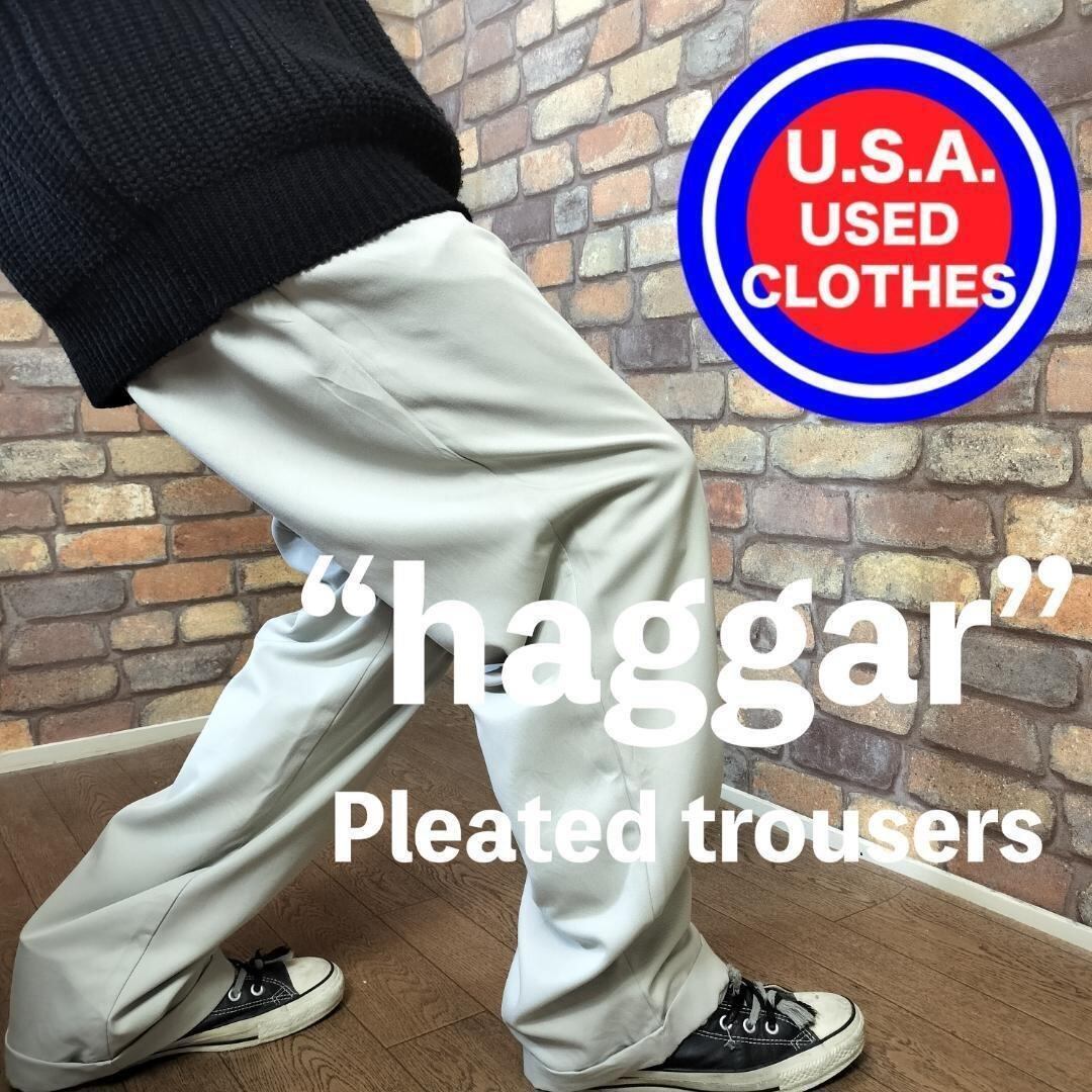 【HAGGAR】ベージュカラー オーバーサイズ スラックス【W36 メンズ XL】BP2-619