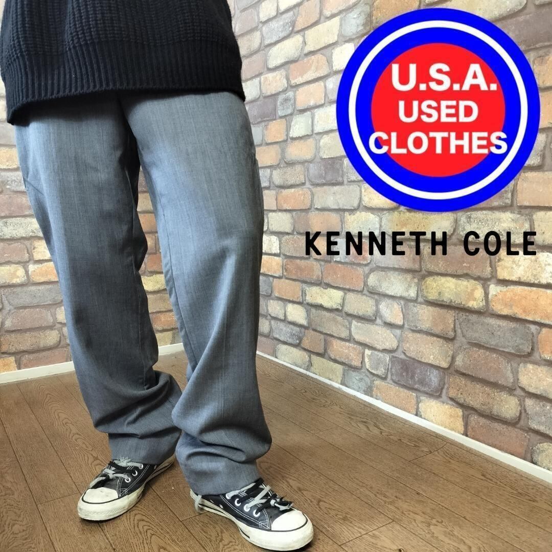 【KENNETH COLE】 美品 グレーカラー プレーン ウールスラックスパンツ【30R メンズ M】BP2-645