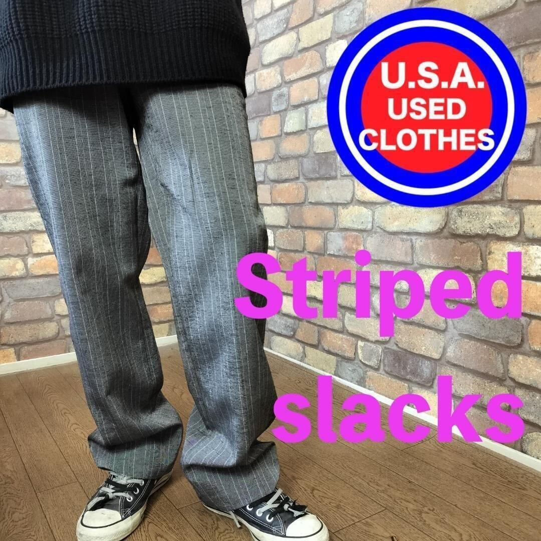 【美シルエット】US古着 グレーカラー ストライプ スラックス【W29 メンズ S】BP2-660